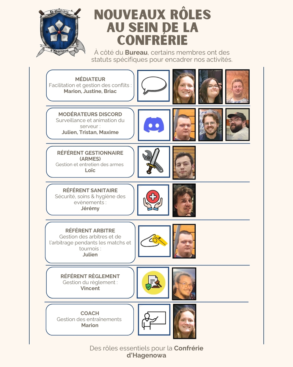 Voici les membres hors bureau (sauf exception) qui ont un rôle, regarder l'illustration